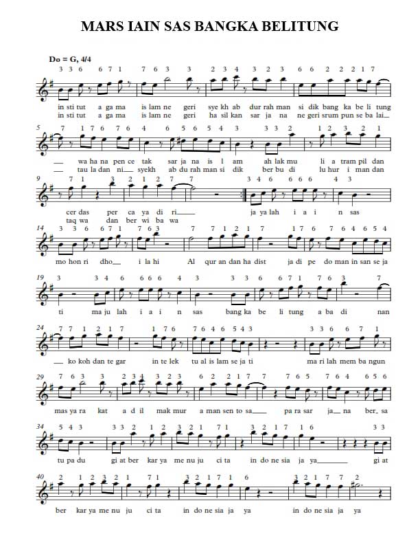 Institut Agama Islam Negeri Syaikh Abdurrahman Siddik Bangka Belitung (IAIN SAS BABEL) memiliki Lagu Hymne dan Mars. Kedua lagu ini digunakan dalam acara-acara IAIN SAS BABEL. Berikut adalah lirik lagu Hymne dan Mars IAIN SAS BABEL:
